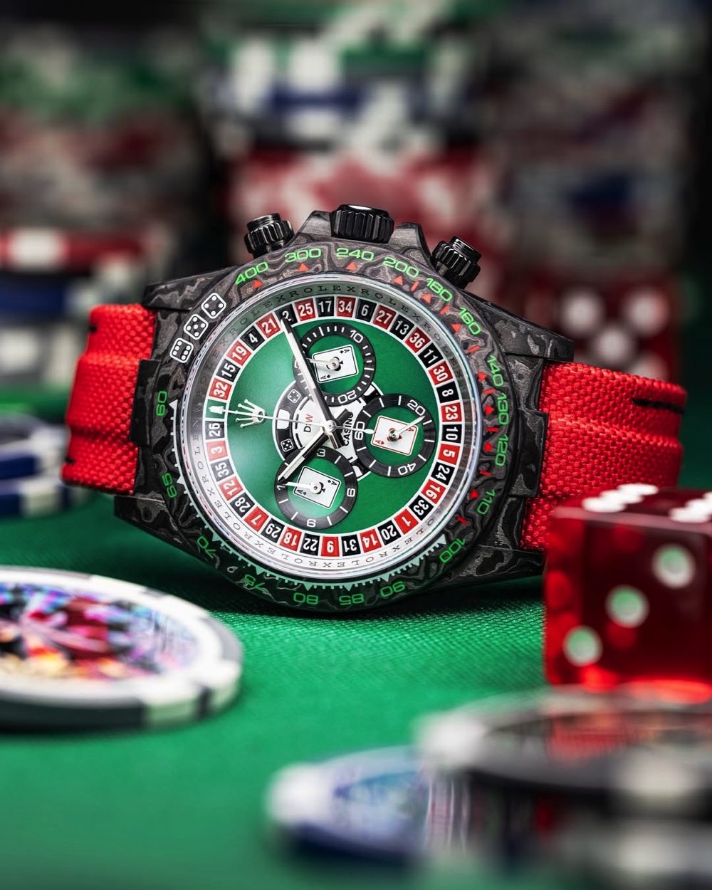 ロレックス「デイトナ」をベースにしたカスタムモデルが登場する。ルーレットやサイコロの要素を取り入れたダイヤルデザインが特徴。価格は1045万円で、…